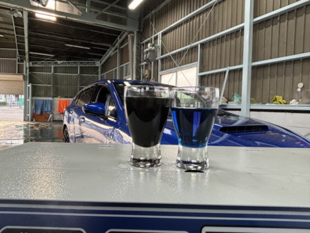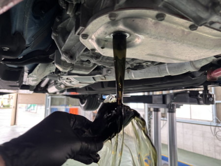 交換前は黒く汚れていましたが圧送交換をし新油と同等にきれいになりました。