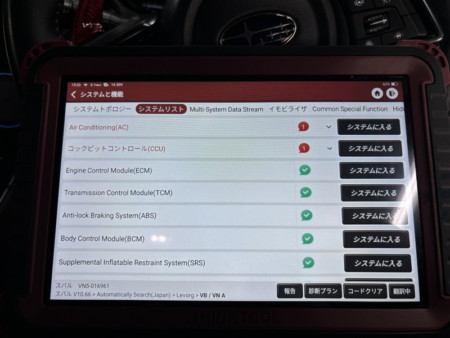 まずは走行試運転と外部診断機による故障コードのチェックをします。