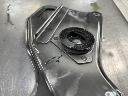 オイルパン内の磁石には鉄粉がついているので清掃してきれいにしてから元に戻します。